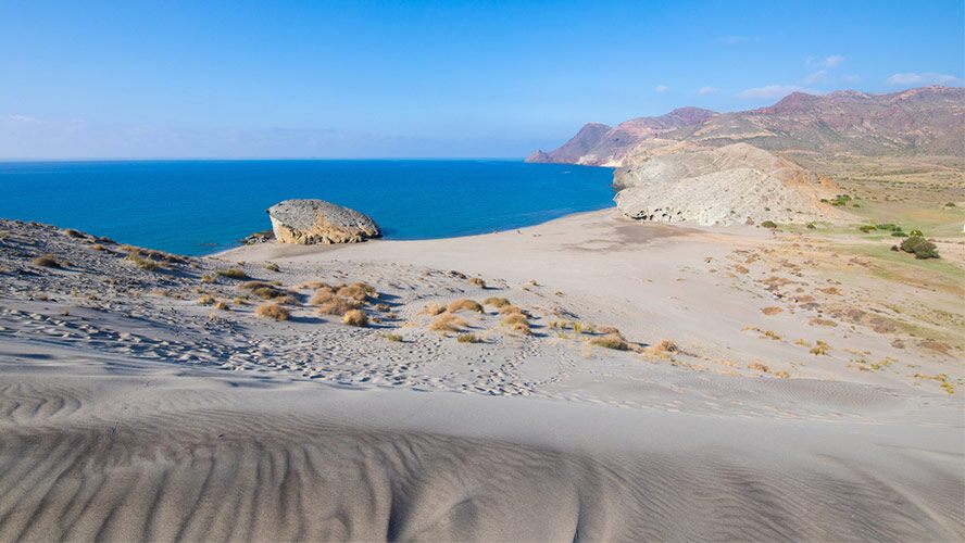 Nosotros nos sentimos afortunados de tener en España una de las playas más hermosas del mundo: La Playa de Mónsul. Esta belleza natural es un verdadero tesoro turístico dentro del Parque Natural Cabo de Gata-Níjar en Almería, España, y sin duda alguna es un destino que todos deben visitar al menos una vez en su vida.